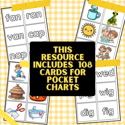 108 CVC Pocket Chart Cards and Binder Rings