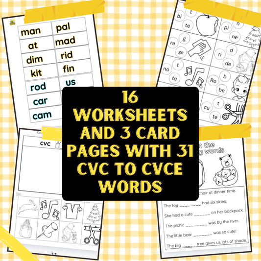 CVC to CVCe Cards & Worksheets