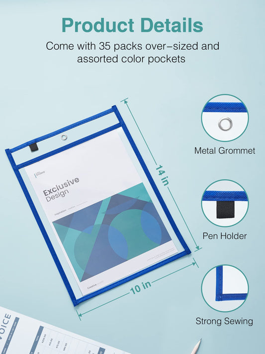 Puroma 35 Pack Dry-Erase Pockets Reusable Plastic Sleeves